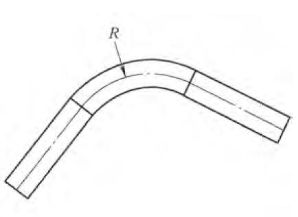 汽車管路不可避免地會遇到很多彎角,管路彎角的設計要靈活合理。既要保證產品的可制造性也要盡可能滿足管路布置的需求。汽車尼龍管的設計由于工藝限制,需使用直線加彎角的形式呈現,不可以使用樣條曲線制作數據。尼龍管的彎角半徑R是彎角的關鍵參數,如圖2所示。